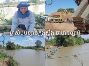 ខេត្តពង់ធំ៖ នៅព្រឹកថ្ងៃទី១៣ ខែវិច្ឆិកា ឆ្នាំ២០២២នេះ លោក ឡេង ថៅកែបូមខ្សាច់ខ្នាតយក្ស មួយកន្លែង នឹង ជាគ្រូបង្រៀនមួយរូប នៅសាលា ឃុំដូង បានប្រាប់បណ្តាញសារព័ត៌មានជាច្រើនអង្គភាពថា៖ ស្ទឹងដែលលោកកំពុងតែធ្វើអាជីវកម្មបូមយកខ្សាច់រាប់ឆ្នាំហើយនេះ គឺមានការអនុញ្ញាតផ្តល់អាជ្ញាប័ណ្ណ ដោយ ឯកឧត្តម ងួន រតនៈ អភិបាល នៃគណ:អភិបាលខេត្តកំពង់ធំ និង