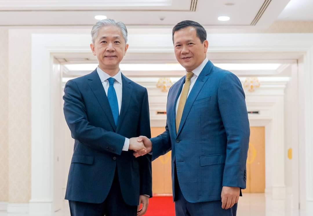 ភ្នំពេញ៖សម្តេចមហាបវរធិបតី ហ៊ុន ម៉ាណែត នាយករដ្ឋមន្ត្រី នៃព្រះរាជាណាចក្រកម្ពុជា ទទួលជួបសម្តែងការគួរសម និងពិភាក្សាការងារជាមួួយ ឯកឧត្តម វ៉ាង វិនពីន (Wang Wenbin) ឯកអគ្គរដ្ឋទូតវិសាមញ្ញ និងពេញសមត្ថភាព នៃសាធារណរដ្ឋប្រជាមានិតចិន ប្រចាំព្រះរាជាណាចក្រកម្ពុជា នៅវិមានសន្តិភាព រាជធានីភ្នំពេញ នាព្រឹកថ្ងៃទី២២ ខែកក្កដា ឆ្នាំ២០២៤។