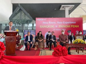ជើងហោះហើររវាង រាជធានីភ្នំពេញ និងទីក្រុងបាងកក របស់ក្រុមហ៊ុនអាកាសចរណ៍ VietJet Air ត្រូវបានសម្ភោធបើកឱ្យដំណើការហើយ នាព្រឹកថ្ងៃពុធ ថ្ងៃទី១៦ ខែមិនា ឆ្នាំ២០២២នេះ ក្រោមអធិបតីភាព ឯកឧត្តមនាយឧត្តមសេនីយ៍បណ្ឌិត ម៉ៅ ហាវណ្ណាល់ រដ្ឋមន្ត្រីទទួលបន្ទុករដ្ឋលេខាធិការដ្ឋានអាកាសចរស៊ីវិល ។